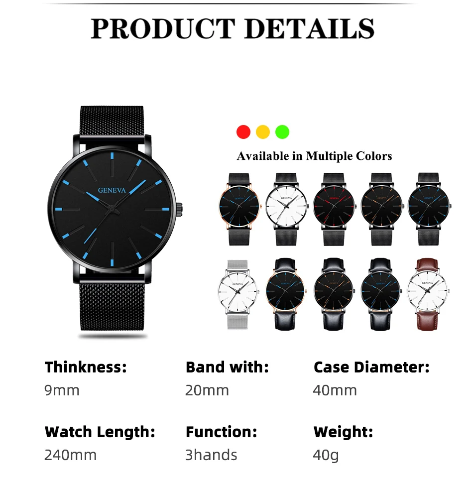 • Design ultrafino: elegante e moderno, este relógio possui um design ultrafino, perfeito para qualquer ocasião.
